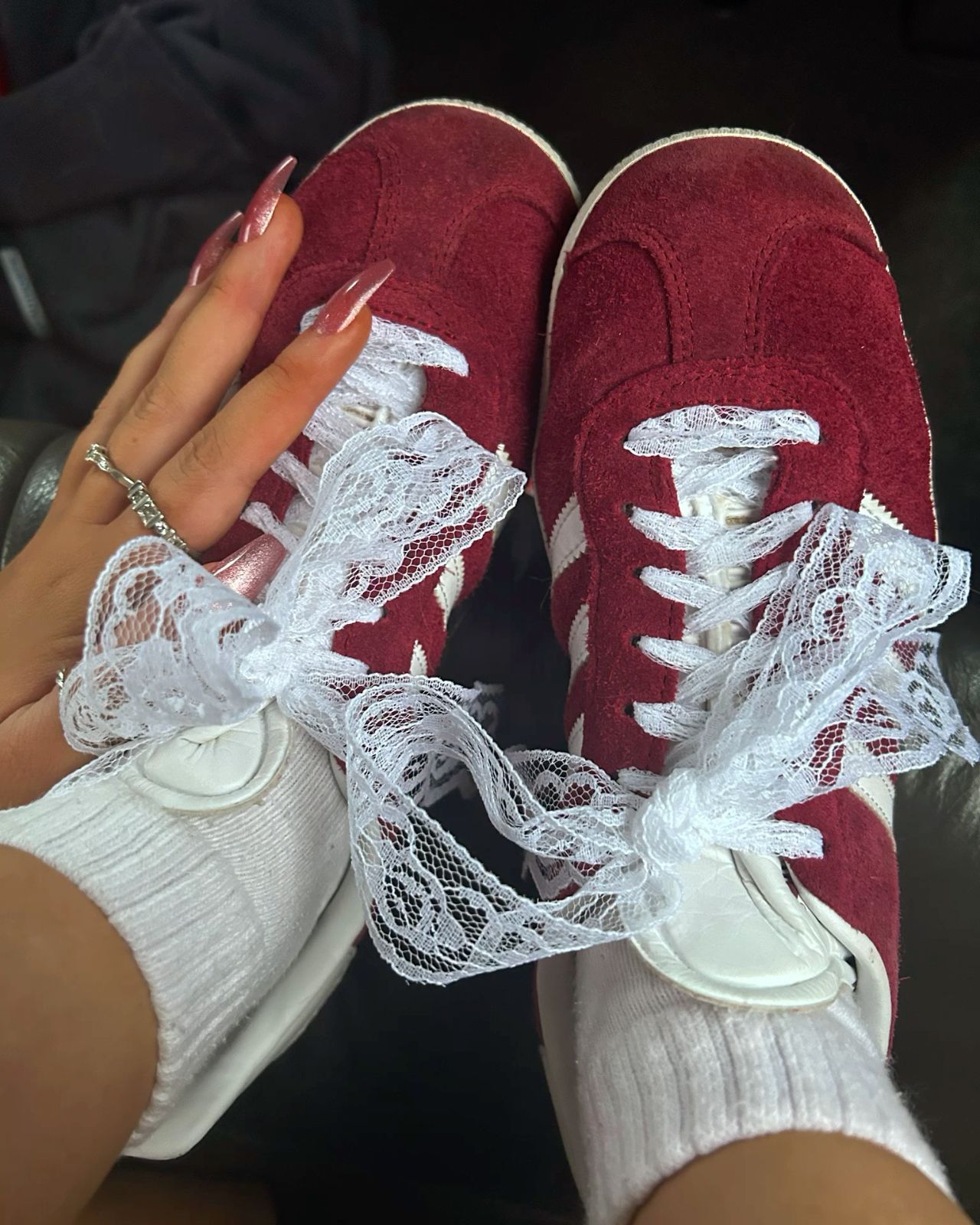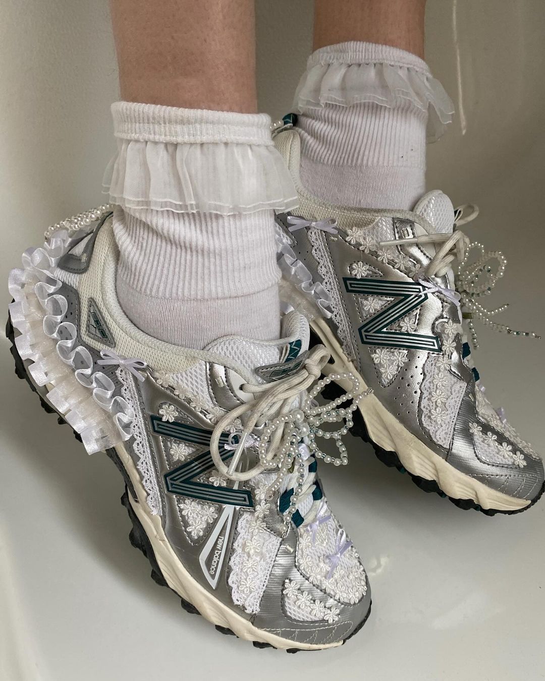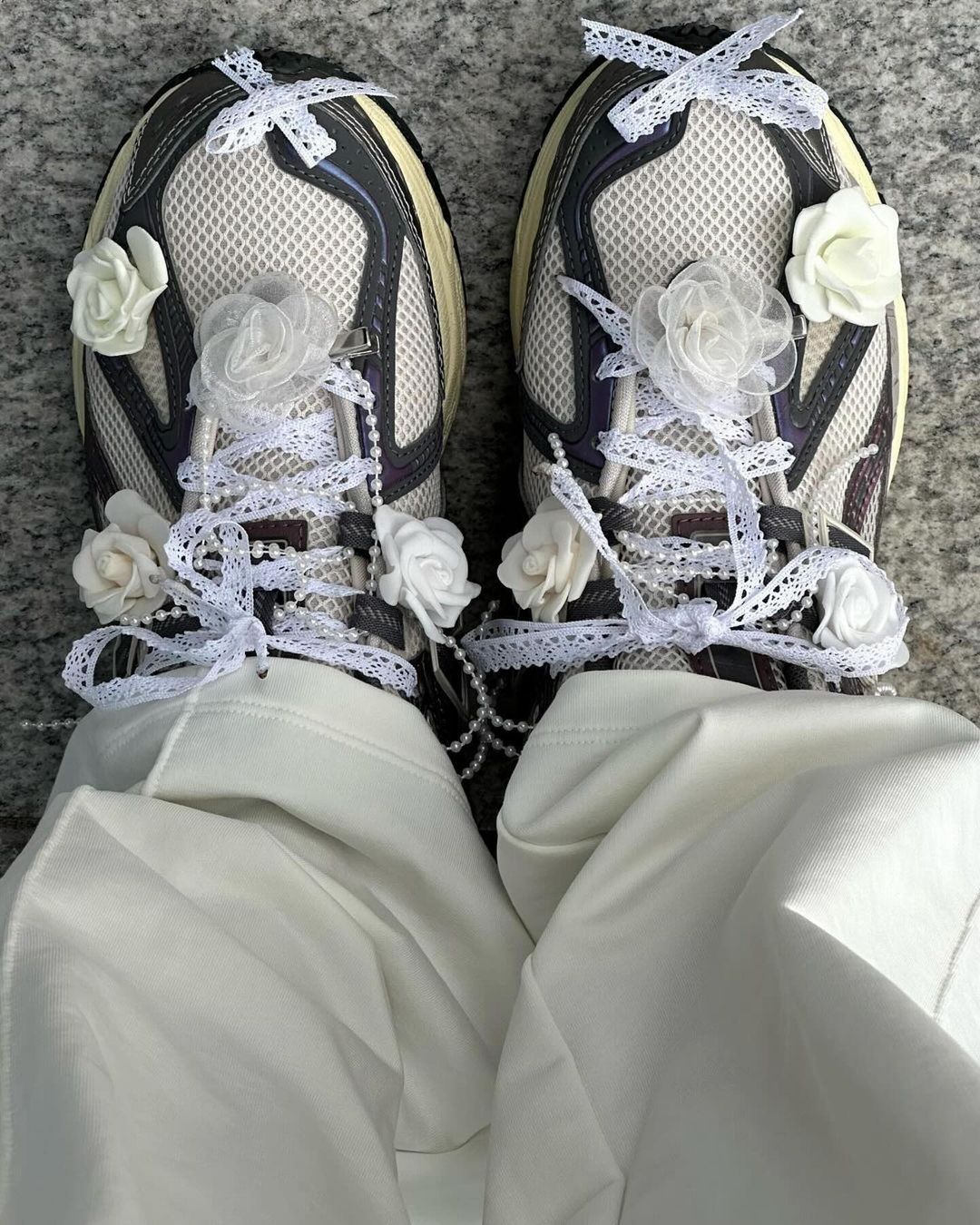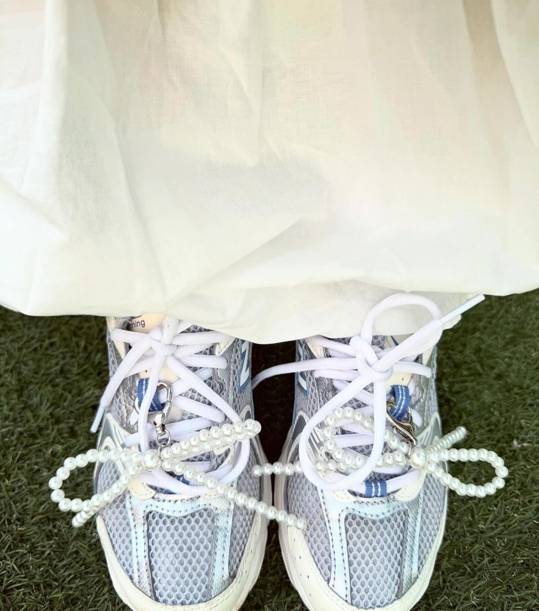 Nếu bạn không phải là người khéo tay hay đam mê tự làm đồ thủ công, thì ý tưởng trang trí phụ kiện cho giày thể thao này chính là sự lựa chọn hoàn hảo dành cho bạn. Chỉ cần vài dải ruy băng với bất kỳ màu sắc nào bạn ưa thích, buộc chúng lên đôi sneaker của mình theo cách thông thường như khi buộc dây giày. Sự thay đổi đơn giản này sẽ ngay lập tức “nâng cấp” diện mạo của đôi giày, mang lại cho trang phục của bạn một phong cách “balletcore” đầy tinh tế và quyến rũ.